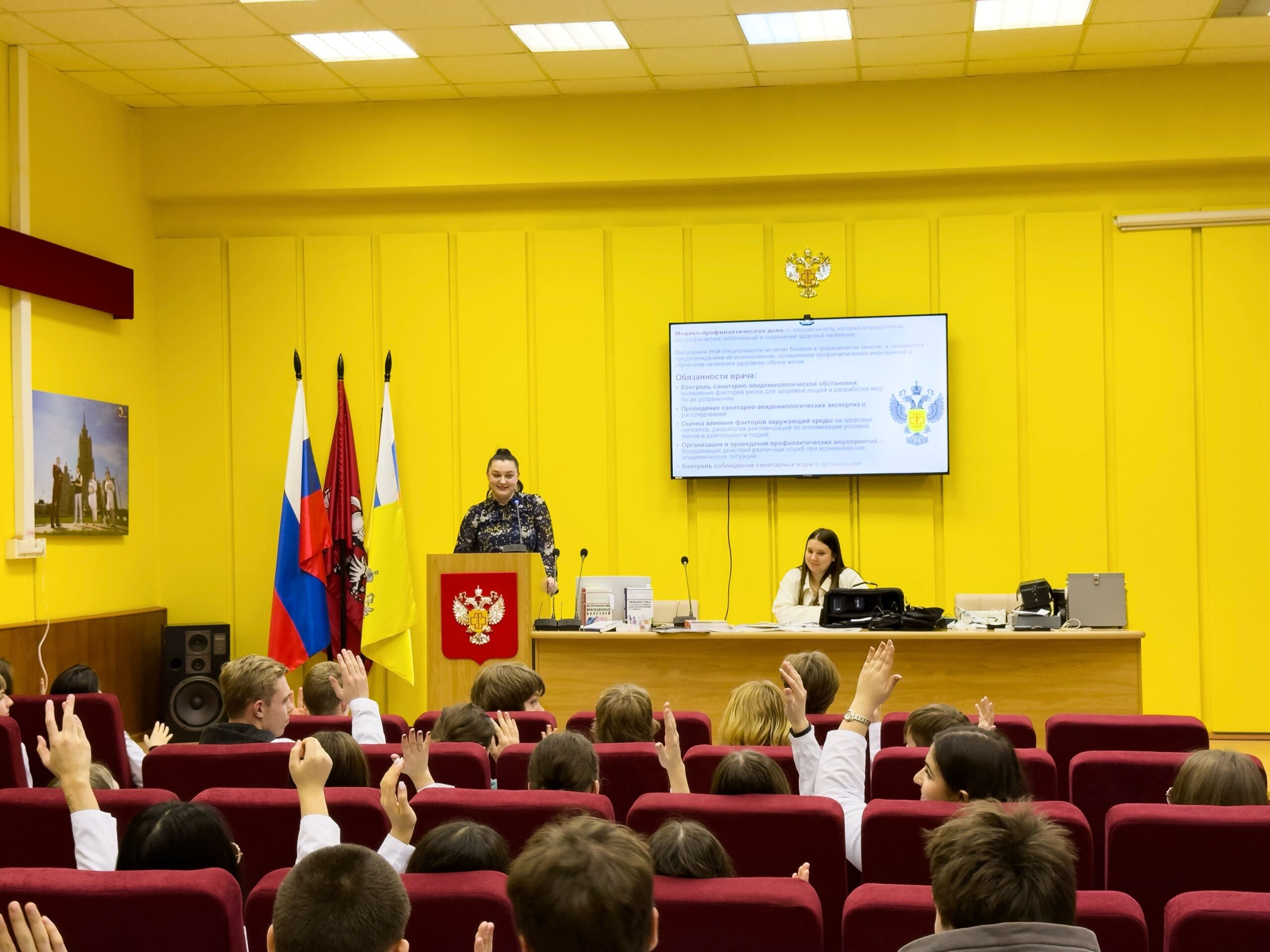 В Филиале ФБУЗ «Центр гигиены и эпидемиологии в городе Москве» в ЗАО города Москвы 12.11.2025г. – 14.11.2025г. проведены мероприятия по профориентации школьников 10-11 классов ГБОУ Школа №1195, ГБОУ Школа №1002, ГБОУ Школа № 2120. Лекторы: врачи по общей гигиене Хайдукова А.А., Глаголева Т.Б., Мирзоева О.И., врач-эпидемиолог Крылов В.П. обсудили со старшеклассниками вопросы обеспечения санитарно-эпидемиологического благополучия населения, организационной структуры Филиала, проведения лабораторных испытаний